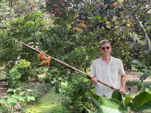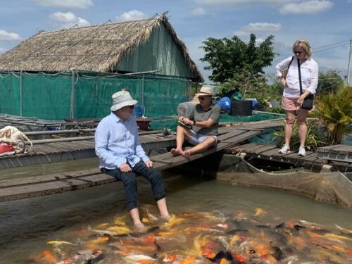 Depart before sunrise to start this comprehensive full-day tour. Breakfast is on the Cai Rang floating market, the biggest in the Mekong Delta. Enjoy the opportunity to experience working factories producing rice noodles and local baked goods. Immerse yourself in rural life with an authentic village lunch and cake buffet while exploring a pomelo and star apple orchard. Visit a floating fish raft village and watch the snakehead fish dance.
