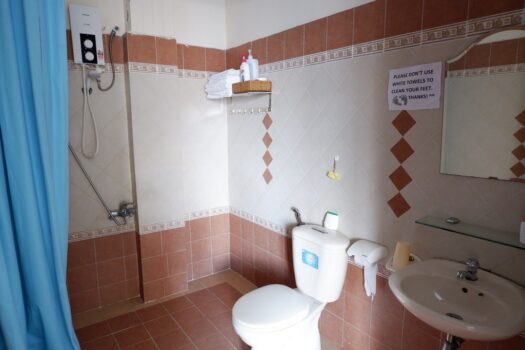 - Máy sấy, khăn tắm, các vật dụng nhà tắm cần thiết